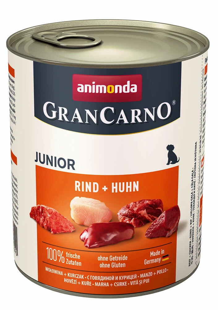 Der Hund stammt bekanntlich vom Wolf ab. In den 15.000 Jahren des Zusammenlebens mit dem Menschen hat sich das Wesen und Aussehen des Hundes stark verändert. Unverändert sind dagegen seine ernährungsphysiologischen Eigenschaften und sein Bedarf an frischen tierischen Rohstoffen. Deshalb wird GRANCARNO®-Hundenahrung ausschließlich aus frischen fleischigen Zutaten, wie Herz, Lunge, Muskelfleisch und Leber zubereitet. Ergänzt mit lebenswichtigen Mineralstoffen und Vitaminen ist GRANCARNO® JUNIOR die natürlich artgerechte Nahrung für Ihren Welpen und Junghund im ersten Lebensjahr. GRANCARNO® ist natürlich, unverfälscht und hat den typischen Fleischgeschmack, den Hunde überaus schätzen.