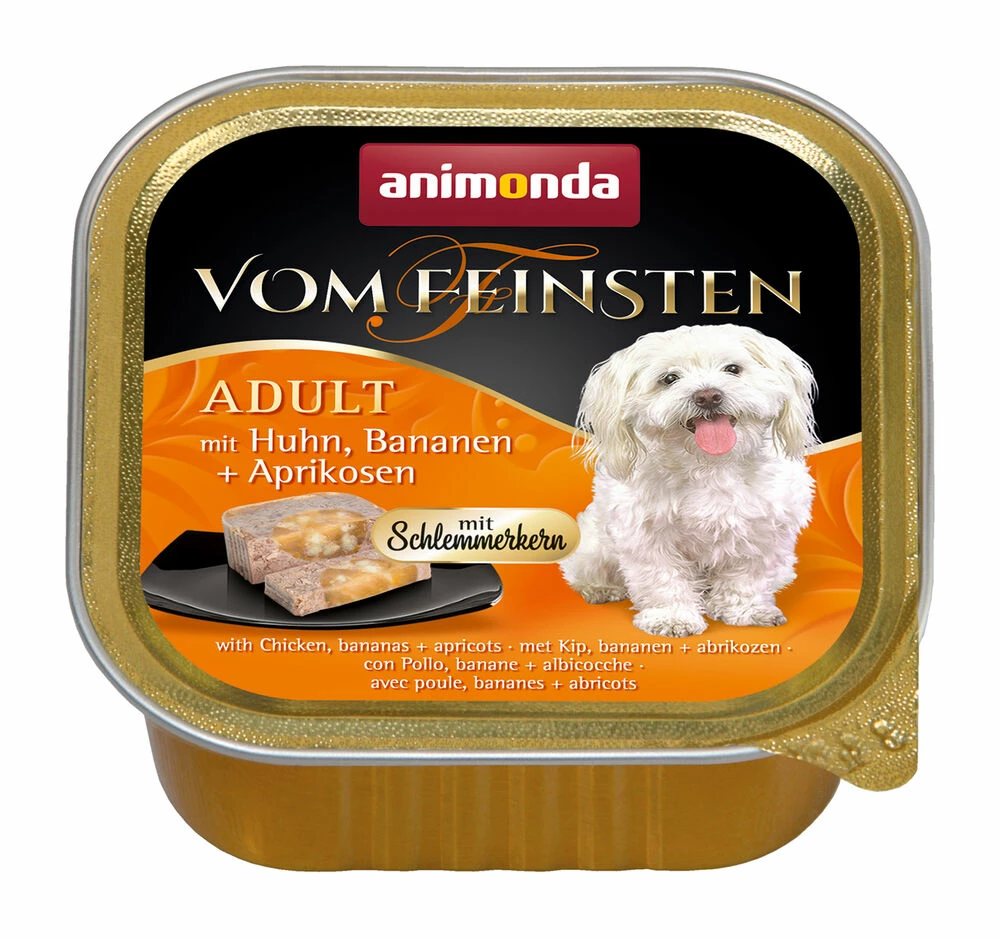 Alleinfuttermittel für ausgewachsene Hunde im leckeren Mix mit Huhn, Banane und Aprikose. Jetzt mit neuem Schlemmer-Kern!
