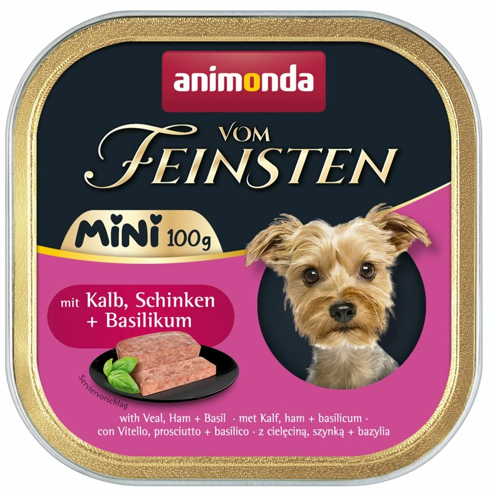 Vom Feinsten Mini Adult ist das Single-Serve-Angebot für besonders kleine Hunderassen. Die schmackhaften Rezepturen mit aromatischen Kräutern stellen eine ausgewogene, appetitliche Ernährung sicher. Vom Feinsten Mini Adult mit Kalb, Schinken + Basilikum: La Dolce Vita für den Hund – Kalb und Schinken treffen auf appetitliches Basilikum!