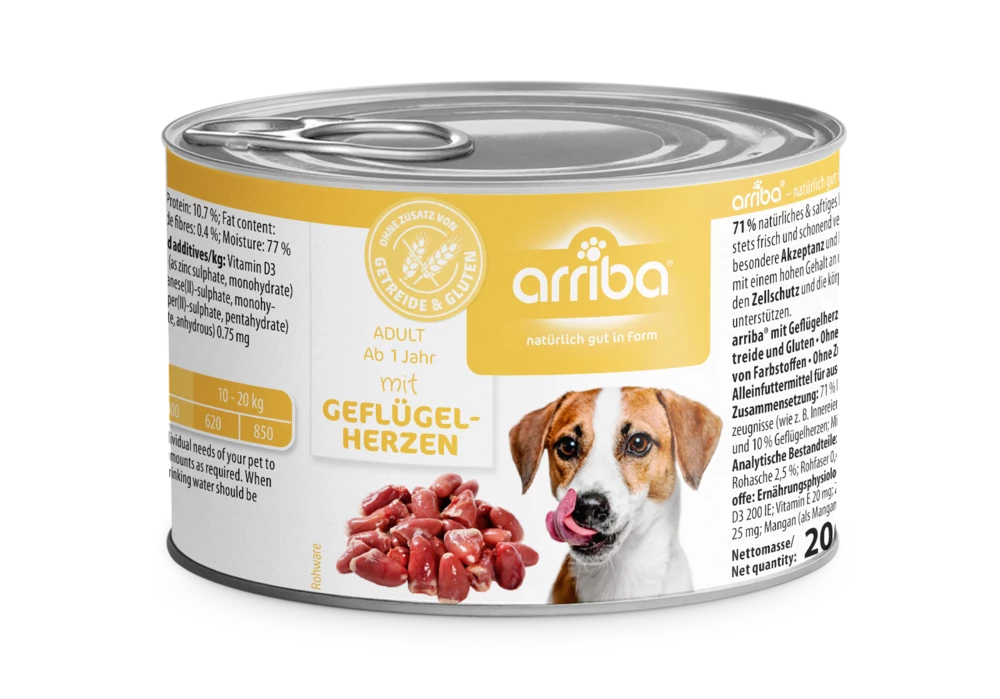 arriba® Hundenassfutter mit Geflügelherzen ist: