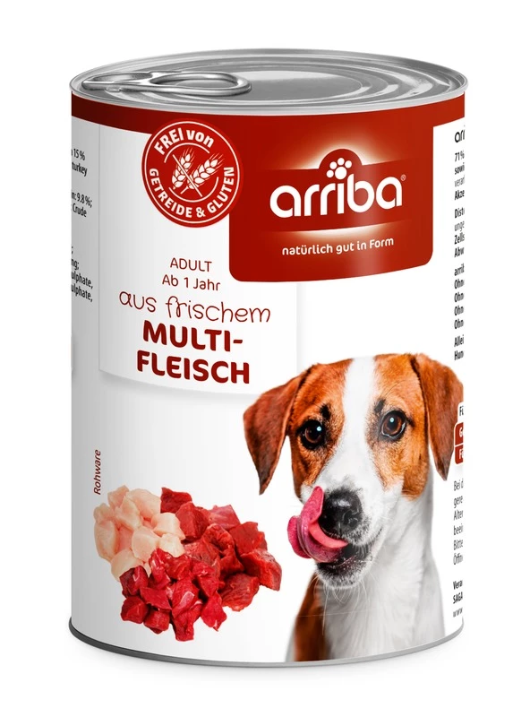 Mit arriba natürlich gut in Form. 71 % Fleisch sowie Innereien, stets schonend verarbeitet, sorgen für eine besondere Akzeptanz und Bekömmlichkeit. Distelöl mit seinem hohen Gehalt an ungesättigten Fettsäuren kann den Zellschutz und die körpereigenen Abwehrkräfte unterstützen.