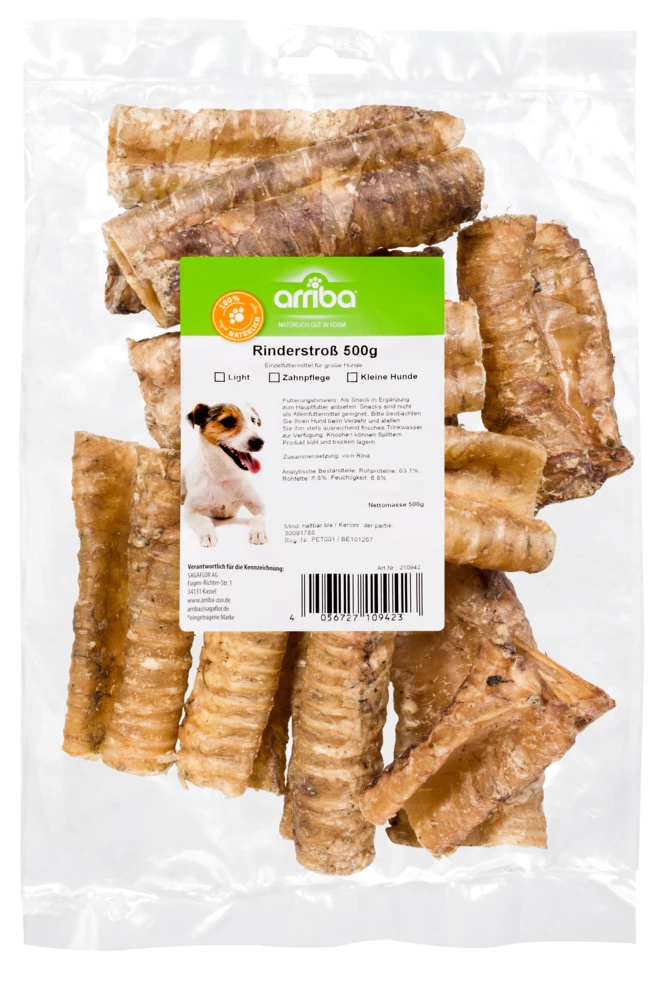 Hundesnack als Einzelfuttermittel für große Hunde. arriba – natürlich gut in Form. 100% natürlich.