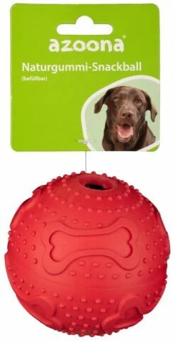 Der azoona Snackball ist aus Naturgummi und kann mit Leckerbissen befüllt werden. Durch ein integriertes Labyrinth gibt es ein extra langes Spielvergnügen. Für den besonderen Spielspaß rollt der azoona Snackball leise und springt.
