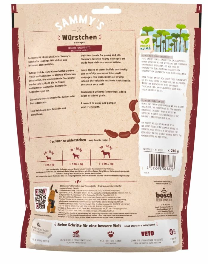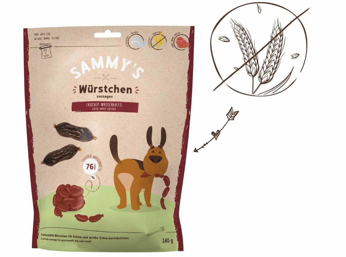 Sammy’s herzhafte Lieblings-Würstchen aus leckerem Wasserbüffel.