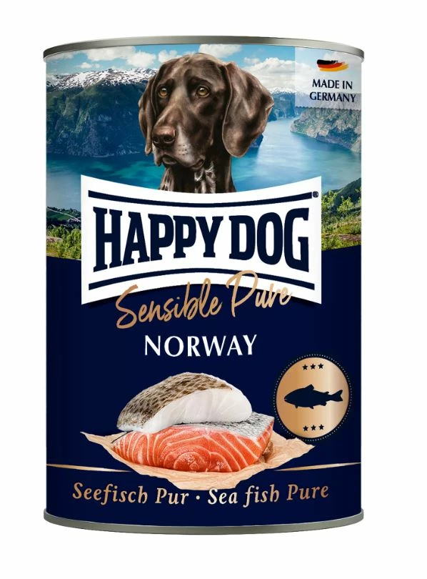 Mit Happy Dog Sensible Pure Norway Hunde premium Nassfutter füllst du den Napf deines Hundes mit reiner Natur. Unsere qualitativ hochwertige Feuchtnahrung wird zu 100 % aus wertvollem Weißfisch (Scholle und Kabeljau) sowie feinem Lachs hergestellt und enthält wichtige Vitamine und Mineralstoffe. Das Nassfutter wird selbstverständlich ohne Soja oder sonstige pflanzliche Zusätze hergestellt.