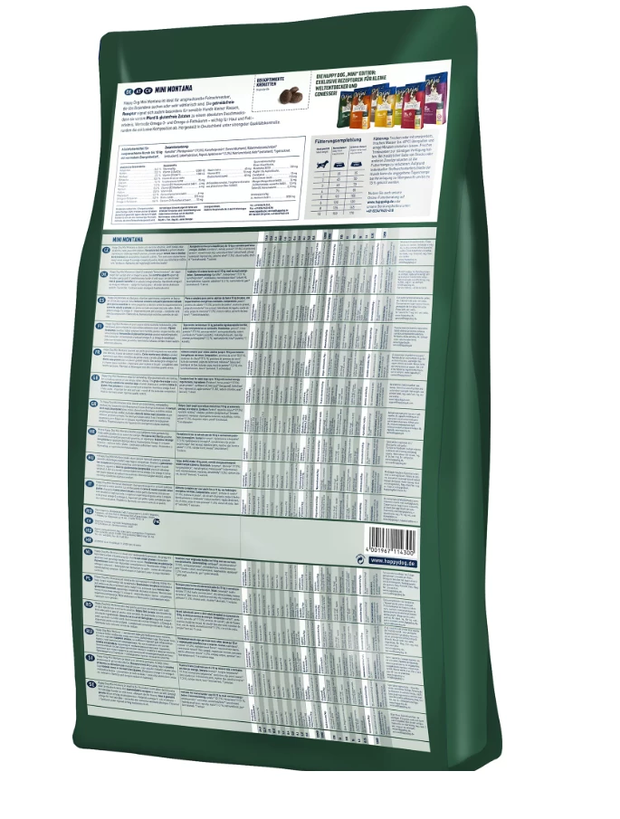 Du suchst ein besonders Verwöhn-Erlebnis für deinen Vierbeiner? Oder hast einen ernährungssensiblen Hund, der zu Verdauungsproblemen und Problemen mit Haut und Fell neigt? Das kann auf eine Futtermittelunverträglichkeit zurückzuführen sein. Pferd als einzige tierische Proteinquelle und glutenfreie Kartoffel machen Happy Dog Mini Montana zu einem Geschmackserlebnis auch für ernährungssensible Vierbeiner. Kartoffeln enthalten kein Gluten und sind für Tiere mit Getreideunverträglichkeiten zu empfehlen. Pferd als seltene und exklusive Proteinquelle zeichnet sich durch eine optimale Verträglichkeit aus. Wertvolle Omega-3 und Omega-6 Fettsäuren – wichtig für eine gesunde Haut und ein glänzendes Fell – runden die exklusive Rezeptur ab. Dies macht Mini Montana zu einem ausgewogenen und idealen premium Trockenfutter für Hunde mit Allergien und Futtermittelunverträglichkeiten. Die außergewöhnlich schmackhafte Super-Premium-Vollnahrung Happy Dog Mini Montana ist zudem ideal für alle anspruchsvollen, ausgewachsenen Feinschmecker bis 10kg, die Abwechslung suchen oder sehr wählerisch sind. Die extra kleinen Kroketten sind sehr leicht zu zerkauen.