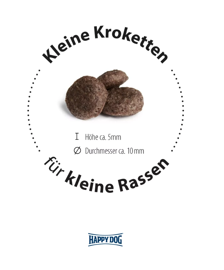 Die extra kleinen Kroketten sind optimal auf das Gebiss kleiner Hunderassen bis 10 kg abgestimmt.