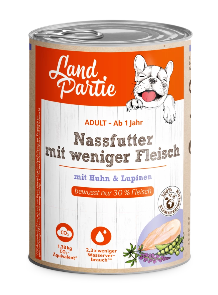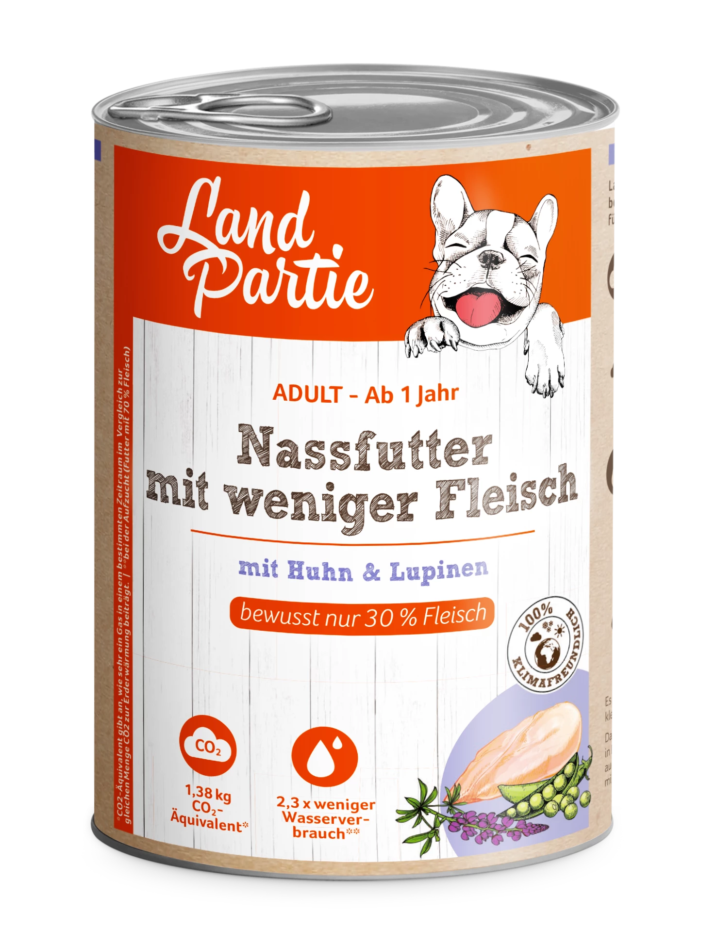 LandPartie Nassfutter ist die bewusste Reduktion von tierischen Proteinen und steht für die Kooperation mit der Natur.