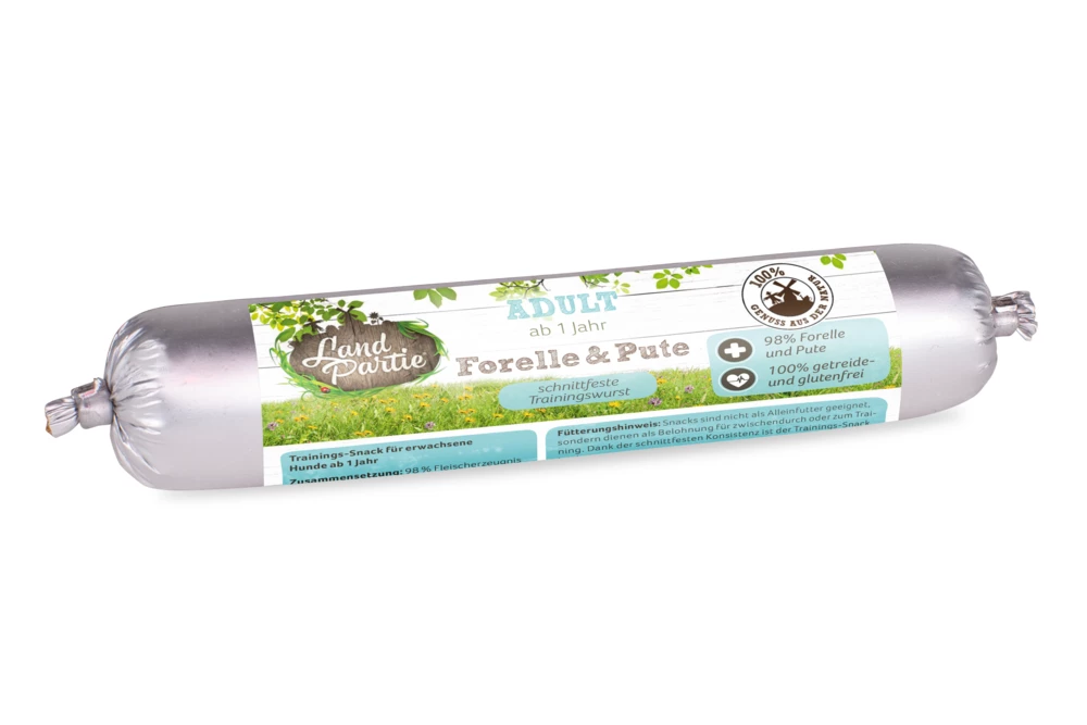 Trainingssnack für erwachsene Hunde ab 1 Jahr von LandPartie. Mit leckerer Forelle und Pute.