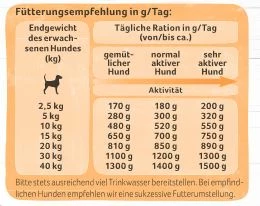 Protein 11 %, Fettgehalt 7 %, Rohasche 2 %, Rohfaser 0,4 %, Feuchtigkeit 72 %