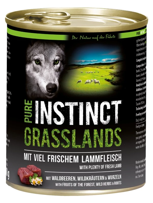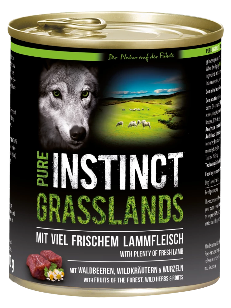 PURE INSTINCT Grasslands – Unsere hochwertige Fleischnahrung enthält nur eine einzige tierische Proteinquelle und ist komplett getreidefrei. Dadurch ist sie besonders gut auch für sehr empfindliche Hunde geeignet. Genau wie PURE INSTINCT- Trockennahrung, ist auch dieses Futter angereichert mit Waldfrüchten, Wildkräutern und Wurzeln und unterstützt so eine optimale Ernährung Ihres Hundes. Hochwertiges Lachsöl versorgt Haut und Fell zusätzlich mit wertvollen Omega-3- und -6-Fettsäuren. Alle sorgfältig ausgesuchten Zutaten ergeben zusammen eine vollwertige Nahrung, die schmeckt und bei jeder Mahlzeit eine ursprüngliche Ernährung unterstützt Tag für Tag bis ins hohe Hundealter.