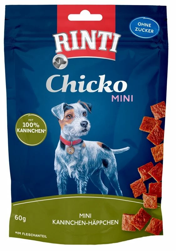 RINTI mit der Echt-Fleischgarantie. Chicko Mini Kaninchen-Häppchen werden ausschließlich aus frischem Kaninchenfleisch zubereitet, ohne Fleischmehle, ohne Soja (pflanzliche Eiweißextrakte) und dazu schonend luftgetrocknet mit anschließender Sterilisation. Sie schmecken nicht nur besonders lecker, sondern sind auch so bekömmlich und gut verdaulich.