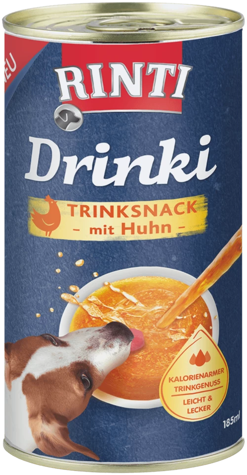 Rinti Drinki ist der kalorienarme Snack und so lecker mit feinsten Fleischstückchen, als Belohnung und zwischendurch. Bei der Ernährung mit Trockenfutter besteht erhöhter Trinkbedarf, auch bei Sport und Spiel, dann wird durch Zugabe von Drinki in den Wassernapf die Trinkfreude erhöht.