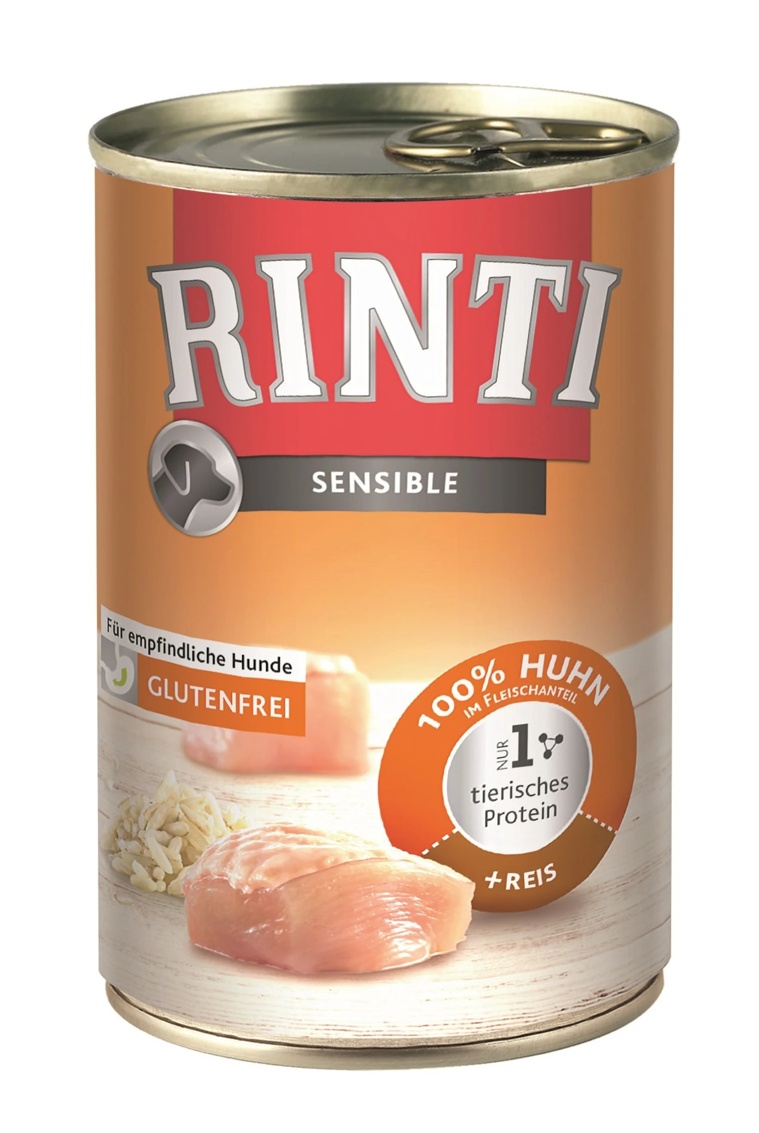 400g Ringpull-Dosen mit Kohlenhydratbeigabe, ausschließlich mit Hühnerfleisch und Reis. Es sind keine weiteren Fleisch-, Getreide- und Gemüsesorten enthalten als in der Sorte genannt!
