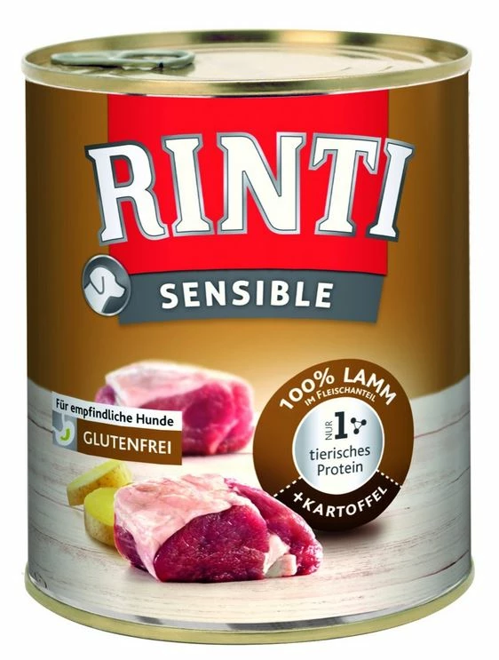 Ausgewählte Proteine: Diese hochwertige Vollnahrung wird ausschließlich mit Lamm und Kartoffel zubereitet. Dadurch kann sich das Risiko von Futtermittelallergien und -unverträglichkeiten reduzieren, die sich unter anderem auf die Haut und das Fell auswirken können. Durch die Anreicherung mit Kartoffeln verbessert sich die Nahrungsverwertung, Kohlenhydrate sind eine fettarme Energiequelle. Glutenfrei: Durch den vollständigen Verzicht auf glutenhaltige Inhaltsstoffe, die zu Magen- und Darmproblemen führen können, eignet sich Rinti Sensible auch zur Ernährung von Hunden mit Glutenintoleranz.