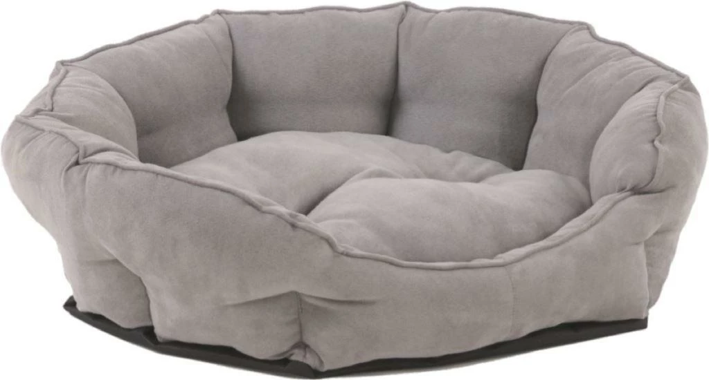 Super-bequemes Liegesofa für Hunde und Katzen in Wildlederoptik. Das moderne Grau versprüht Frische und Eleganz. Größe M ist ideal für mittelgroße Hunde und Katzen.
