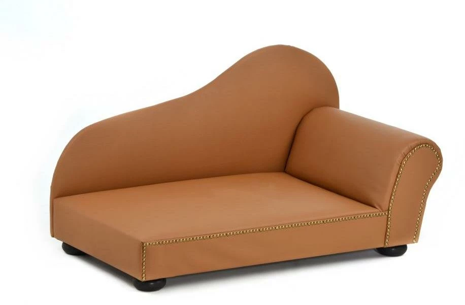 Ein Ottomane aus Kunstleder in nougatfarben als Sofa für Hunde mit höchsten Qualitätseigenschaften und in modernem Design. Made in Germay.