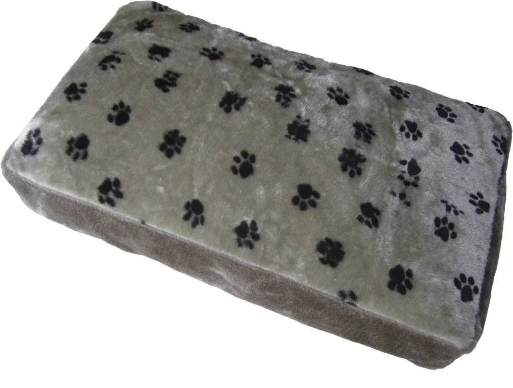 Weiches und gemütliches Liegekissen für Hunde mit hochwertigem Jaquard-Plüsch in Grau mit Pfotenmotiv in Schwarz. Bezug verfügt über einen Reißverschluss, ist abnehmbar und Waschbar. Maße ca. 120x75x8cm