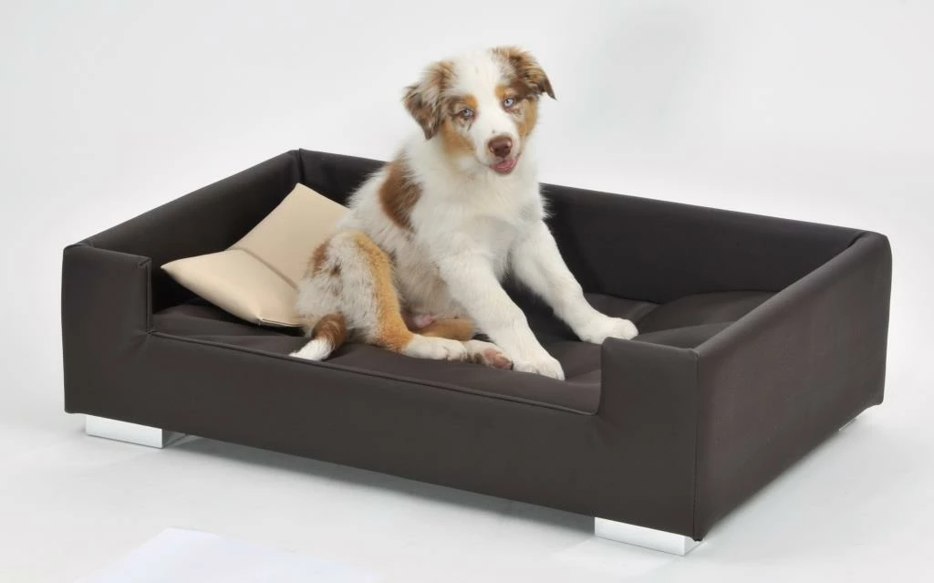 Die Farbe dieses tollen Hundebettes ist ein warmes Braun. Sie erhalten es mit 2 Kissen in Beige, welche eine schöne Farbkombination ergeben. Dieses Hundebett schützt Ihren Hund sehr gut, da es über kleine Ränder an 3 Seiten verfügt. Vorne ist der Rand reduziert damit Ihr Hund bequem in und aus dem Bett kommt. Die kleinen Füße erhöhen das Bett vom Boden.