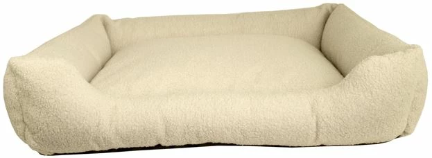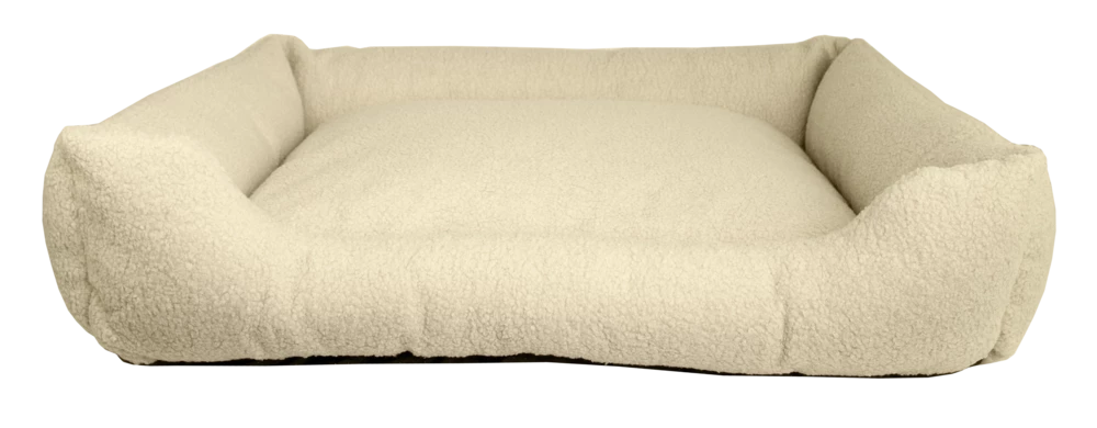 Kuscheliger Liegeplatz aus kuscheligem Teddy Plüsch. Größe M, ca. 80 x 67 x 20 cm.