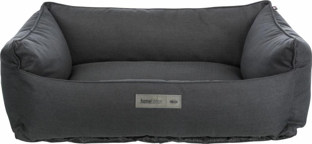 Hundebett aus Webstoff und weichem Polyester-Bezug. Das Bett besitzt ein fest integriertes Kissen sowie einen abnehmberen Bezug. Dieser kann bei 40°C gewaschen werden. Ein rutschfester Boden verhindert ein verrücken, wenn Ihr Liebling sich in sein Bett legen möchte.
